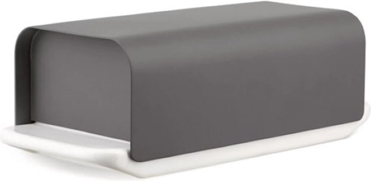 De stijlvolle Alessi botervloot uit de Mattina-collectie is gemaakt van donkergrijs staal en wit porselein. De botervloot is 21 centimeter lang, 9,5 centimeter breed en 7 cm hoog. Gebruik de botervloot om uw boter in de koelkast te bewaren en om op tafel te zetten bij de maaltijd.