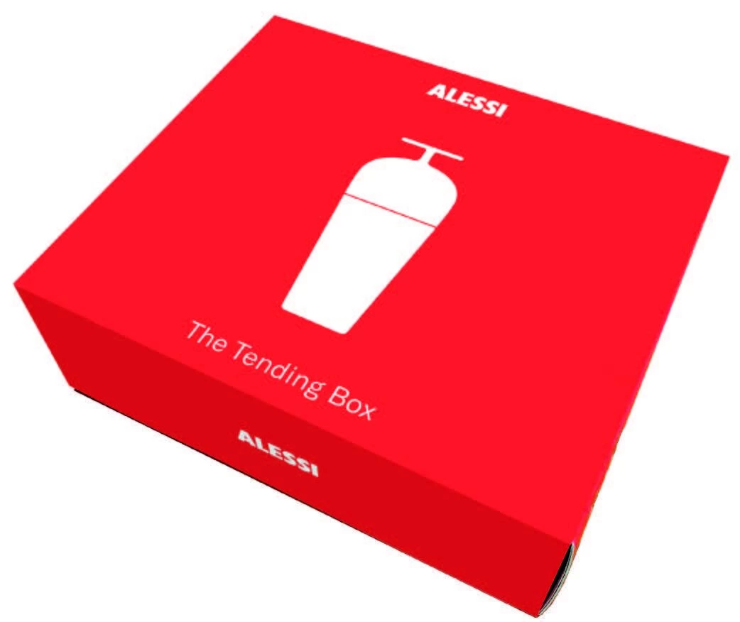 De Alessi The tending box serie kenmerkt zich door zachte lijnen maar strikte ontwerpen en heeft Alessi’s balans tussen vorm en functie. De set is ontstaan uit veel onderzoek naar de bewegingen tijdens het maken van de cocktails en de designs sluiten daar pefect op aan. De serie bestaat uit een cocktailshaker, mixbeker, zeef, maatbekertool, een klassieke cocktail lepel en een mix gereedschap.