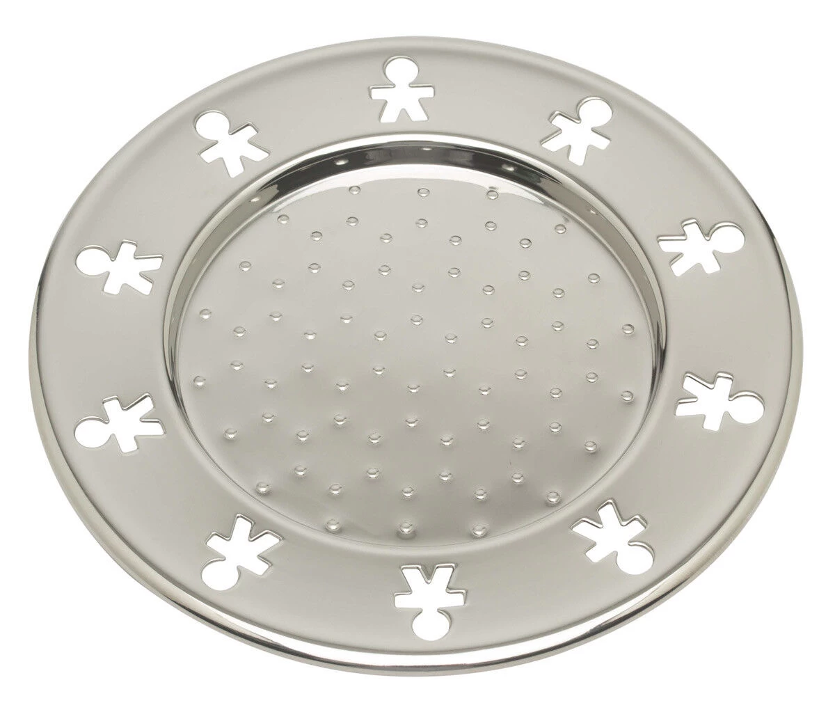 De Alessi Girotondo onderzetter is vervaardigd uit hoogglanzend 18/10 roestvrij staal en is ontworpen door het duo King Kong. De onderzetter heeft een diameter van 13,5 cm. Gebruik als onderzetter voor drinkglazen.