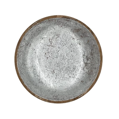 Op zoek naar een stijlvolle schaal om (zomerse) salades of andere gerechten te serveren? Dit exemplaar van By Room is er één voor op uw wensenlijst! Het item is vervaardigd uit mangohout en heeft een rond design met een diameter van 25 cm. De binnenkant is voorzien van een sticker met zilverkleurige print voor een speels effect. Combineer de schaal met het bijpassende slacouvert voor een elegant geheel.