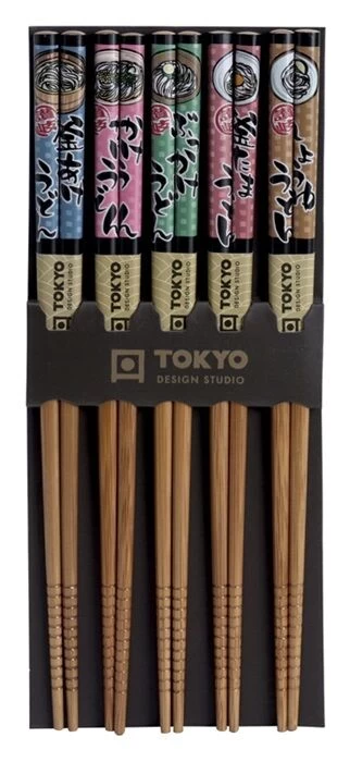 De Oldenhof eetstokjes zijn gemaakt van donkerbruin hout met een motief van noedels en hebben een lengte van 22,5 cm. De stokjes komen in een verpakking met 5 sets van 2 eetstokjes. Gebruik de eetstokjes voor het eten van Aziatische gerechten als sushi of noedels.