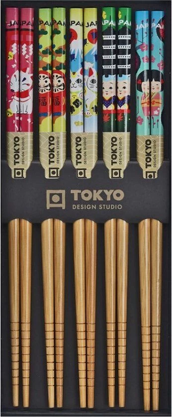 De Oldenhof eetstokjes zijn gemaakt van donkerbruin hout met katten-dessin. De stokjes hebben een lengte van 22,5 cm en komen in een luxe doosje met 5 sets van 2 eetstokjes. Gebruik de eetstokjes voor het eten van Aziatische gerechten als sushi of noedels.