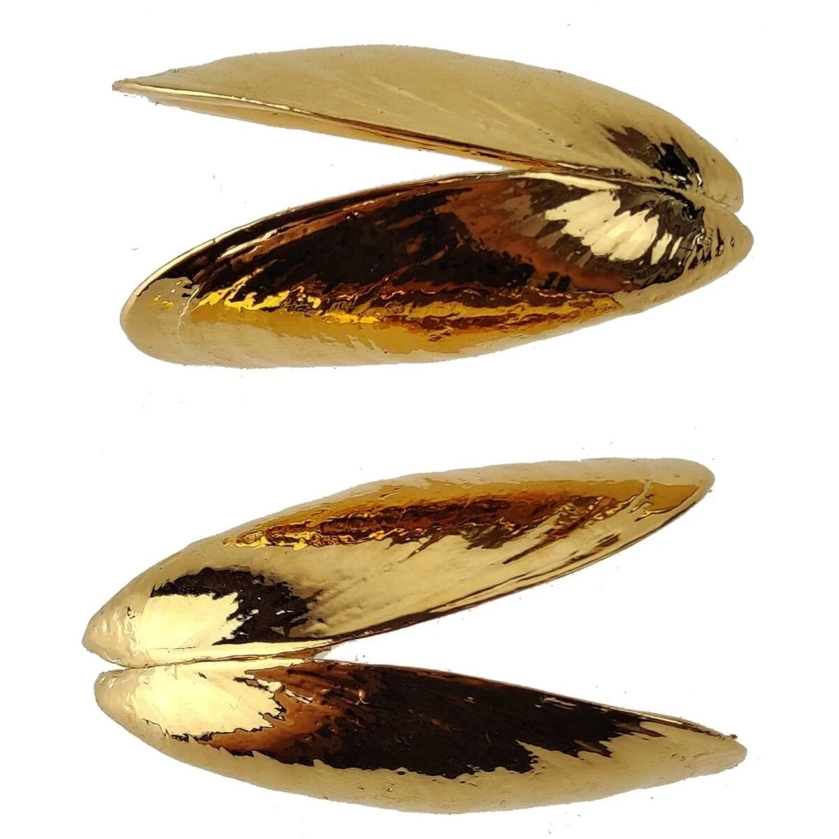 Het Oldenhof Zeeuws mosselbestek is vervaardigd uit zuiver tin en is vervolgens verguld en is ambachtelijk vervaardigd in Nederland. Het mosselbestek heeft de vorm van een mosselschelp en dankzij een speciaal veertje lijkt het exact op een echte mosselschelp. Voor het eten van mossels uit de schelp. Het mosselbestek (2 stuks) komt in een luxe doosje met een certificaat van echtheid en elke schelp is 5,5 cm lang en 2,5 cm breed. Vergulde producten behouden hun kleur en glans.
