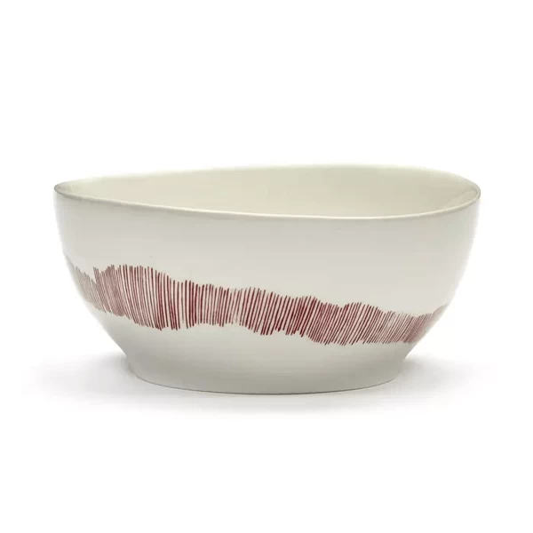 De Serax Feast by Ottolenghi kom S heeft een diameter van 15 cm en is 7 cm hoog. De aardewerken kom is wit van kleur en is voorzien van rode strepen. Gebruik voor het serveren van diverse kleine gerechten.