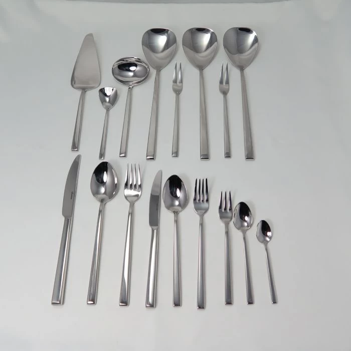 De Cantone serie van het Duitse merk Wilkens is eenvoudig, strak en tijdloos. Dit ontwerp is geïnspireerd op de stijlvolle architectuur uit de Art Deco-periode. Het recht gesneden heft heeft afgeronde hoeken. De bestekset is gemaakt van 18/10 edelstaal. Dit maakt het bestek zeer duurzaam, maar ook praktisch en geschikt voor dagelijks gebruik. Deze set bevat bestek voor 6 personen.